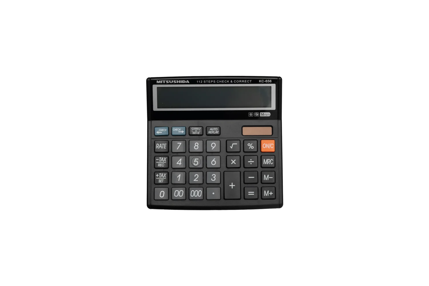 ماشین حساب Mitsushida KC-656 انتخابی هوشمندانه برای حسابداری و کارهای مالی است. این دستگاه با نمایشگر ۱۴ رقمی بزرگ و قابلیت 112 مرحله‌ای Check & Correct، امکان مرور و اصلاح محاسبات طولانی را فراهم می‌کند.